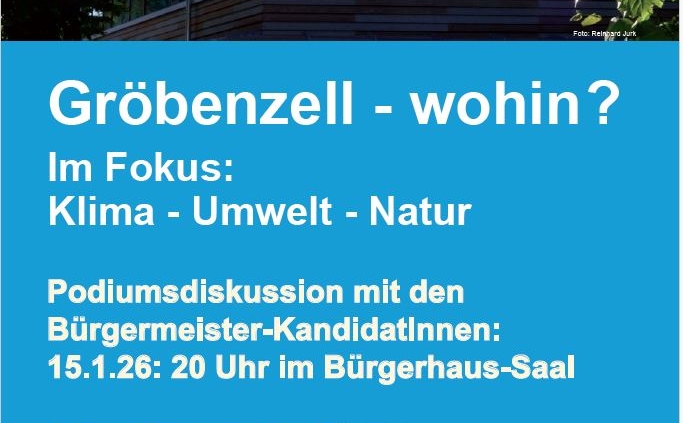 /in Uncategorized /von WolfiAm 15.Januar 2026 lädt der Bund Naturschutz Gröbenzell zur Podiumsdiskussion mit allen Fünf KandidatInnen ein. Wir freuen uns auf Sie.